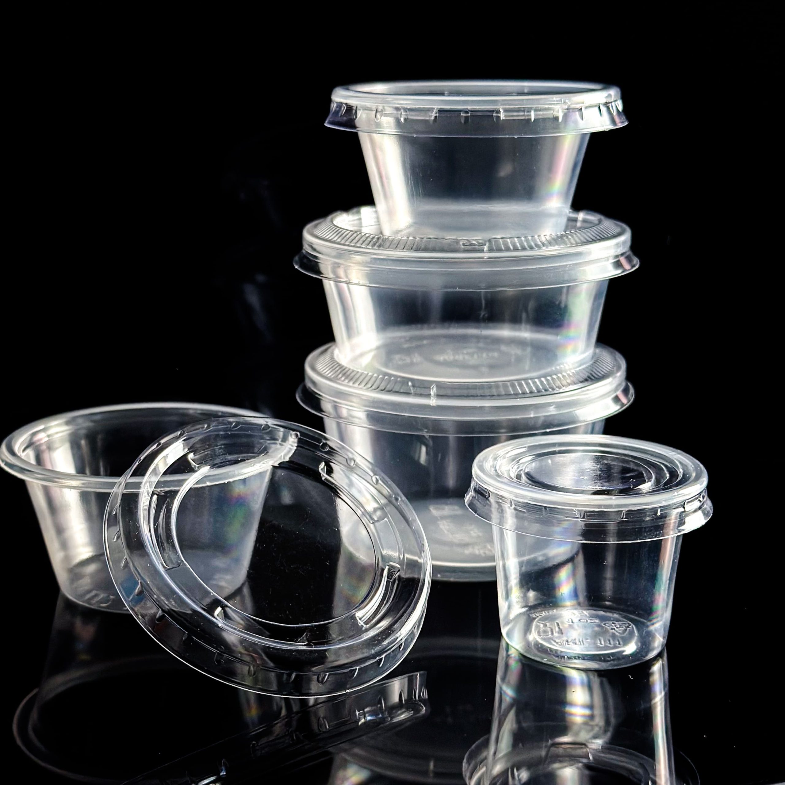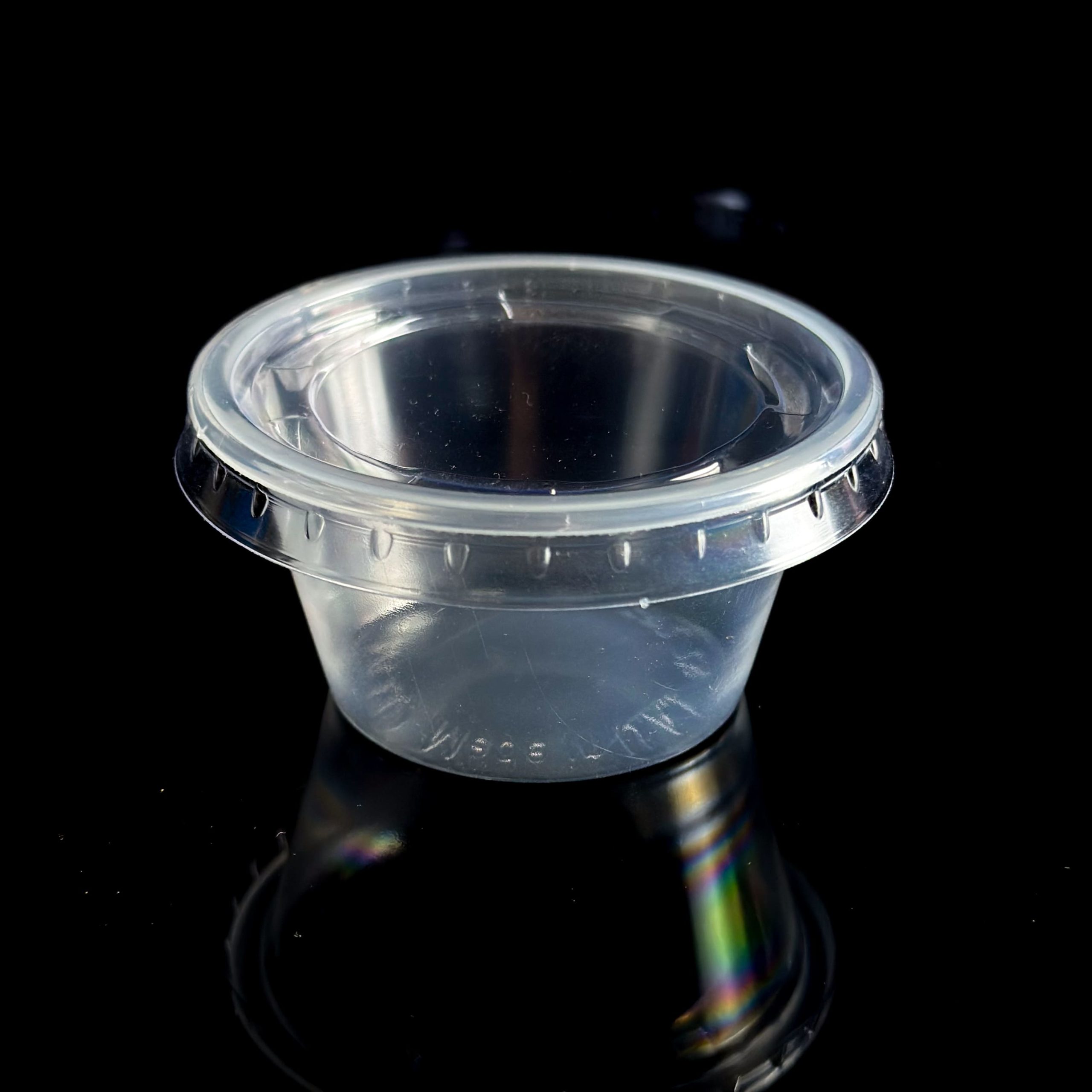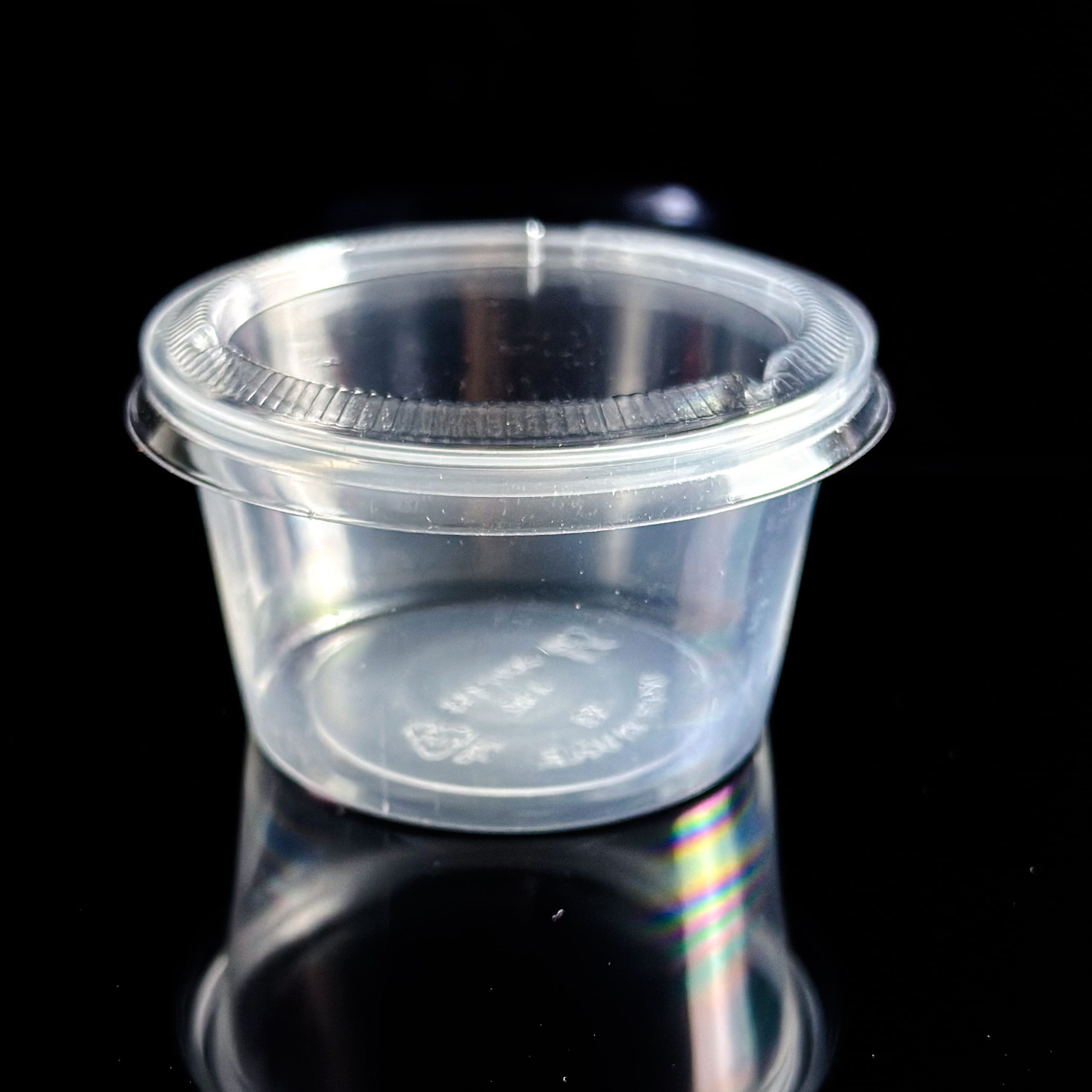 Pot sauce 1 OZ Rond – couvercl détachéCe Pot Plastique rond en Polypropylène est très résistant, ce qui lui permet de passer du congélateur au micro-ondes et permet le remplissage à chaud.